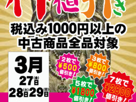 3. 毎月恒例人気NO.1キャンペーン3月『神値引きセール』のお知らせ。3月27日・28日・29日…
