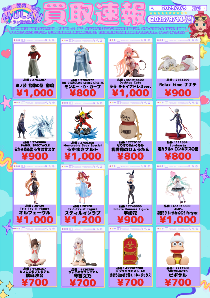 最新プライズ買取強化は9月14日まで!