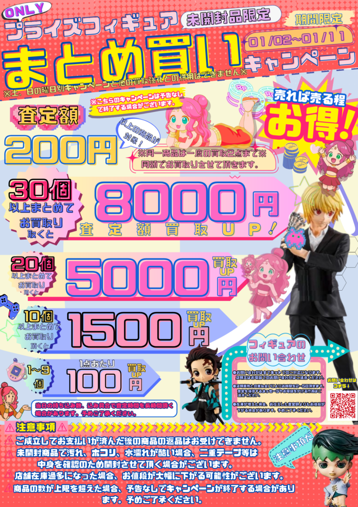 今回は対象品が【未開封のプライズフィギュアのみ】