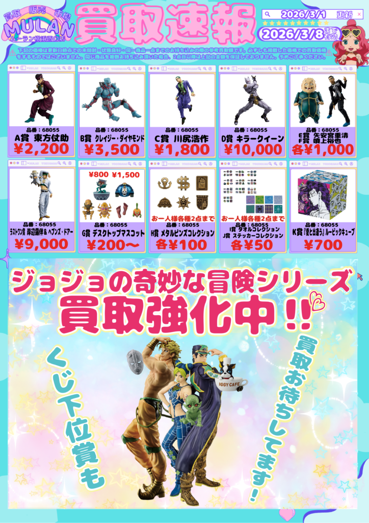 ✨3月1日開始✨一番くじ ジョジョの奇妙な冒険 買取強化は3月8日まで‼