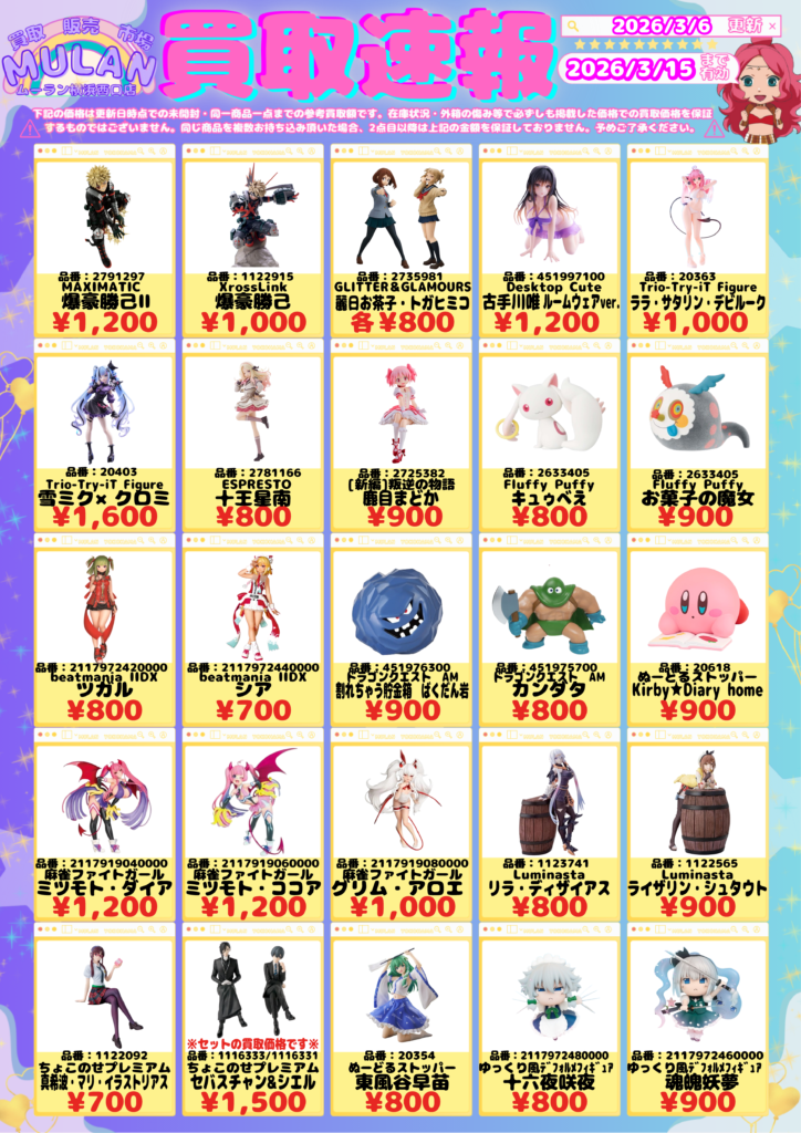 ✨3月6日開始✨最新プライズ買取強化は3月15日まで‼